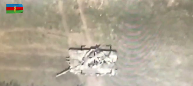 Azerbaijani Loitering Munitions targeting an Armenian main battle tank in the frontier